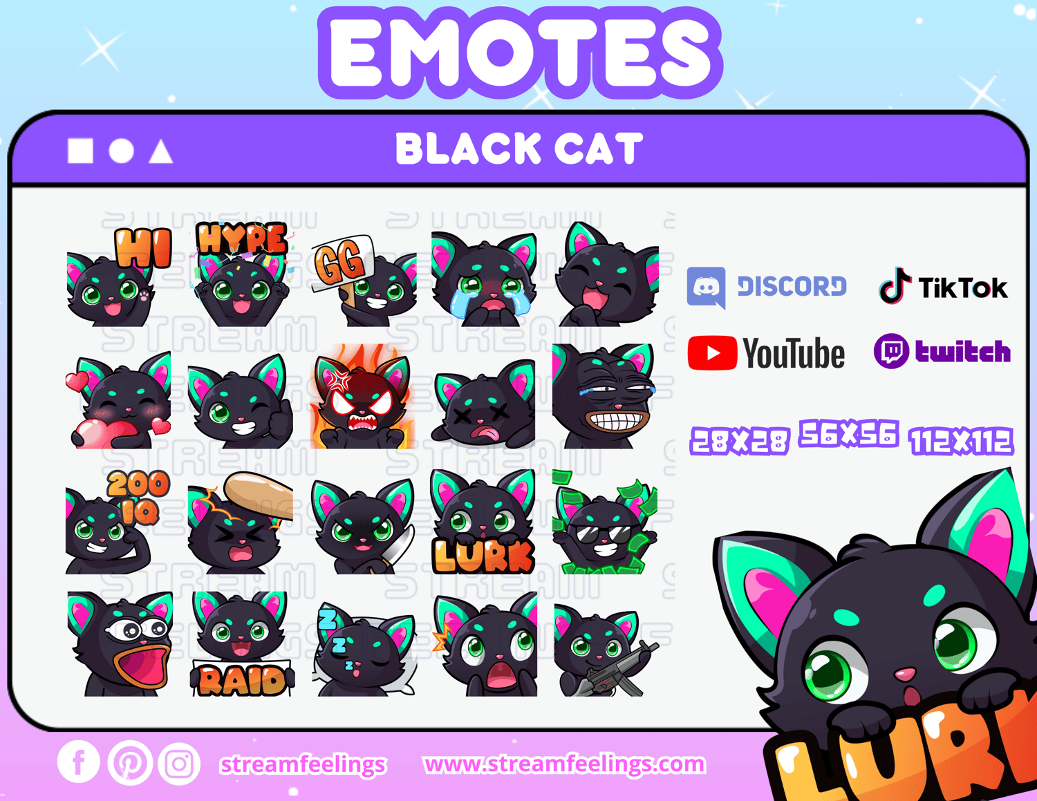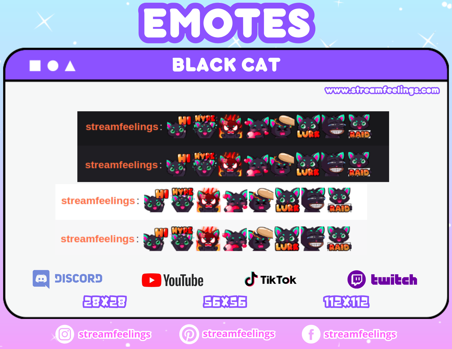 (20x) Black Cat Emotes For Streaming