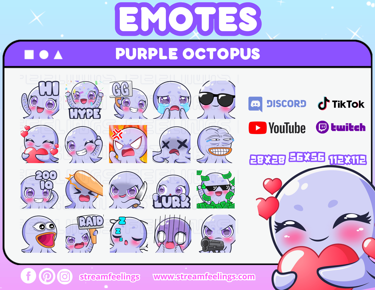 (20x) Purple Octopus Emotes For Streaming