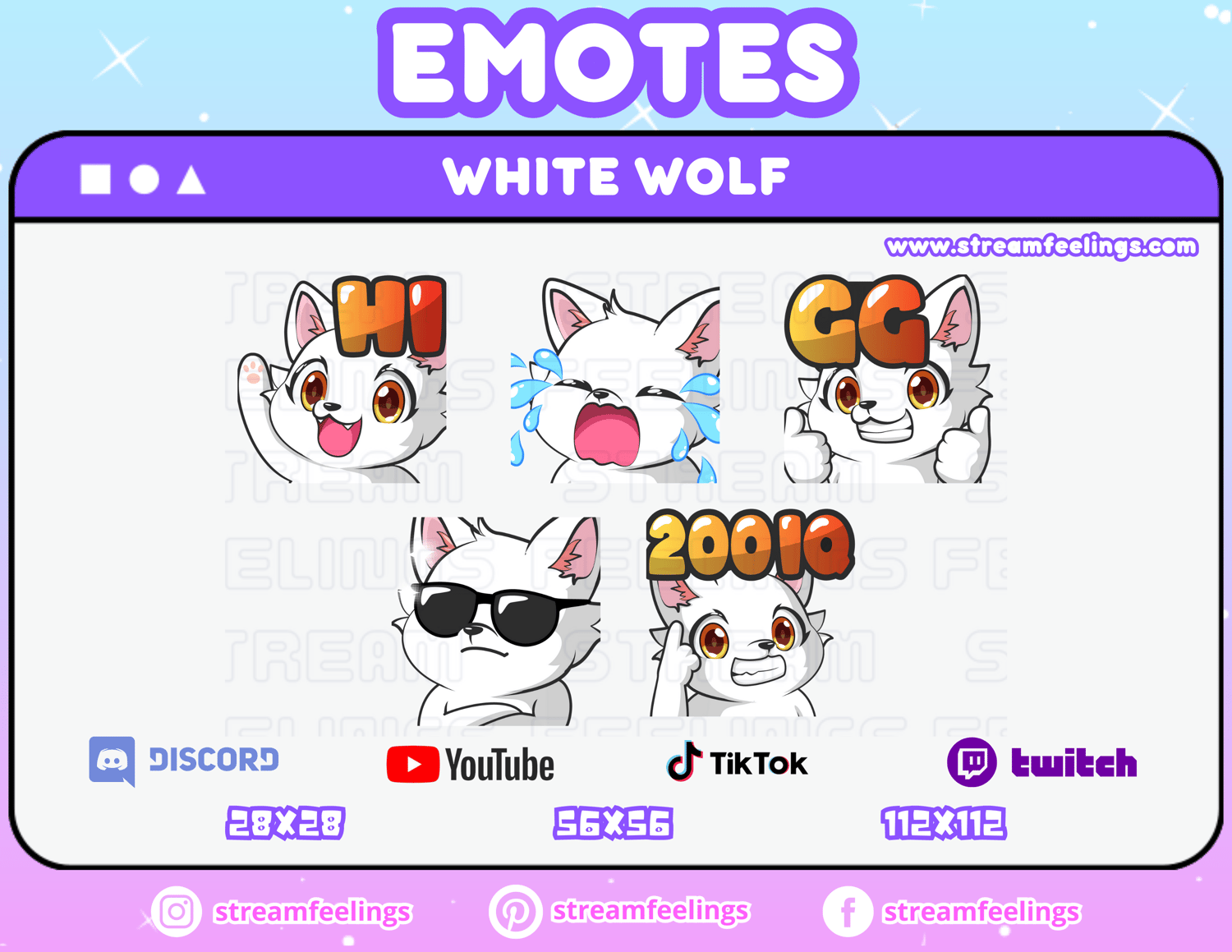 (5x) White Wolf Emotes For Streaming