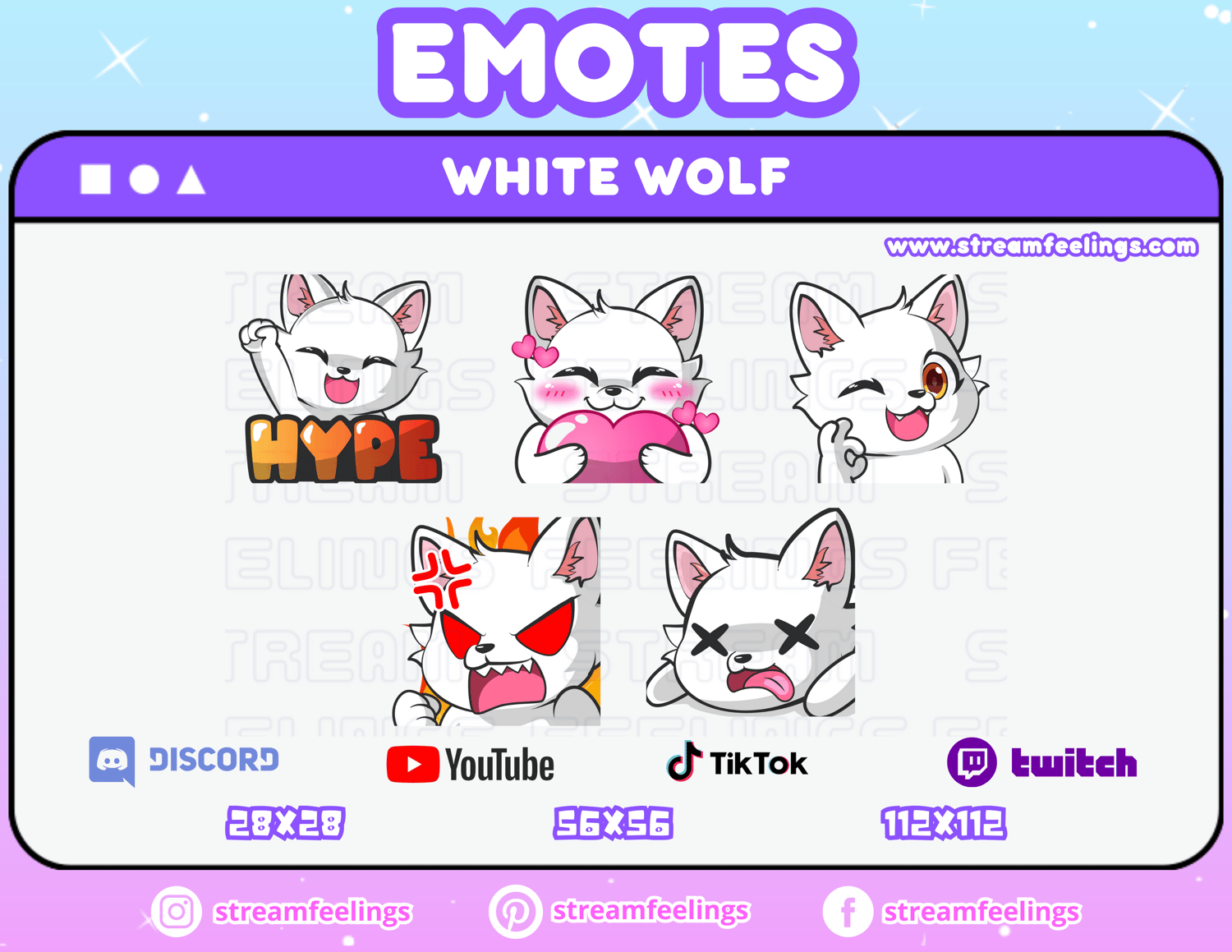 (5x) White Wolf Emotes For Streaming
