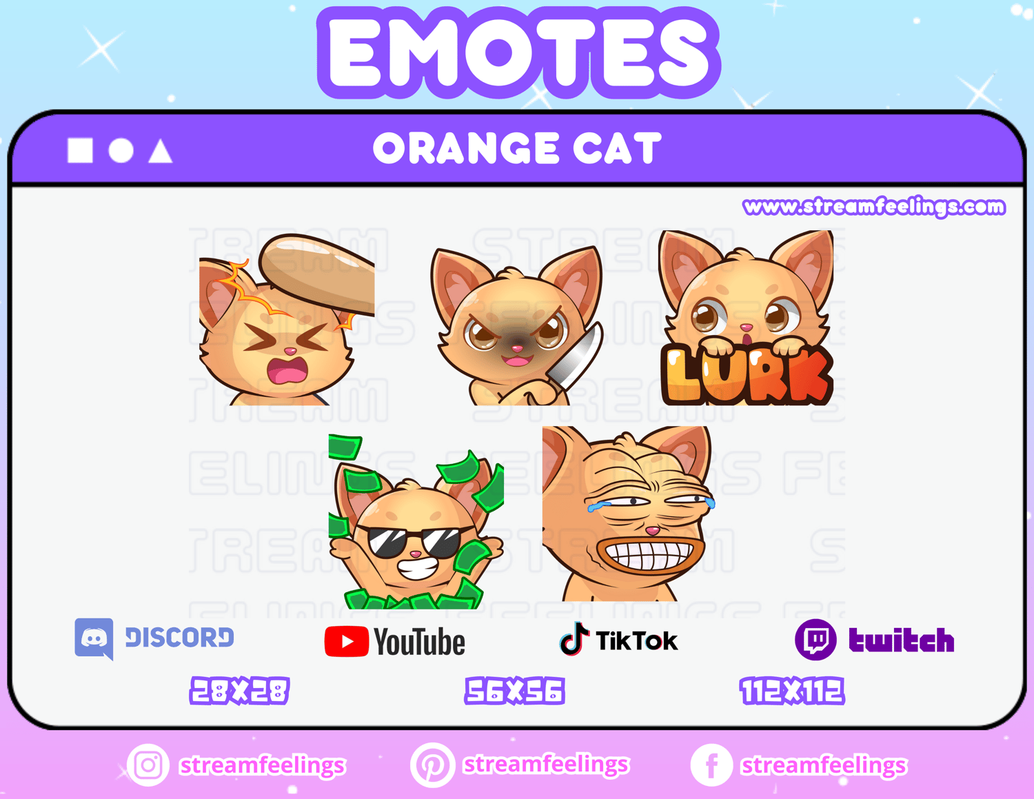 (5x) Orange Cat Emotes For Streaming