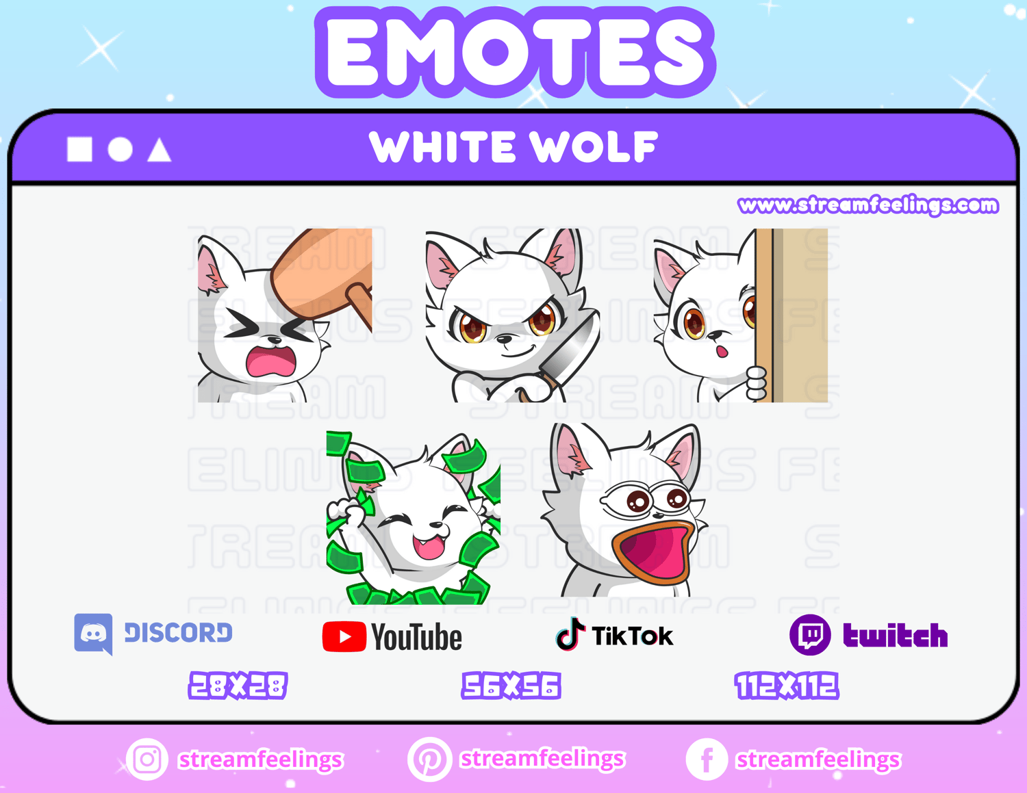 (5x) White Wolf Emotes For Streaming